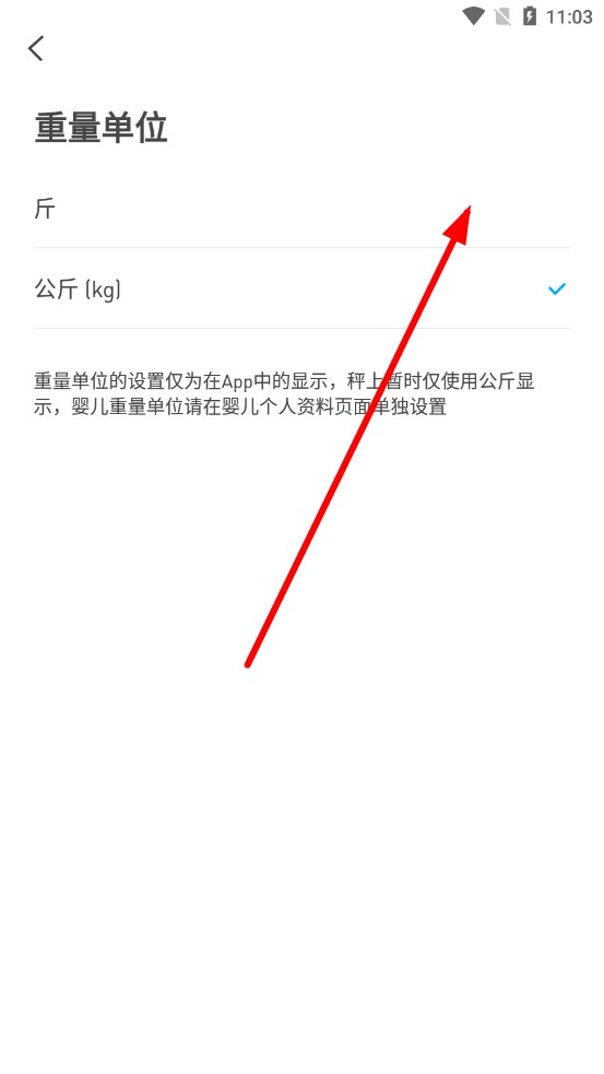 3、在重量單位頁面,選擇「斤」,即可將APP內(nèi)顯示的體重單位切換為斤,僅影響APP端展示。