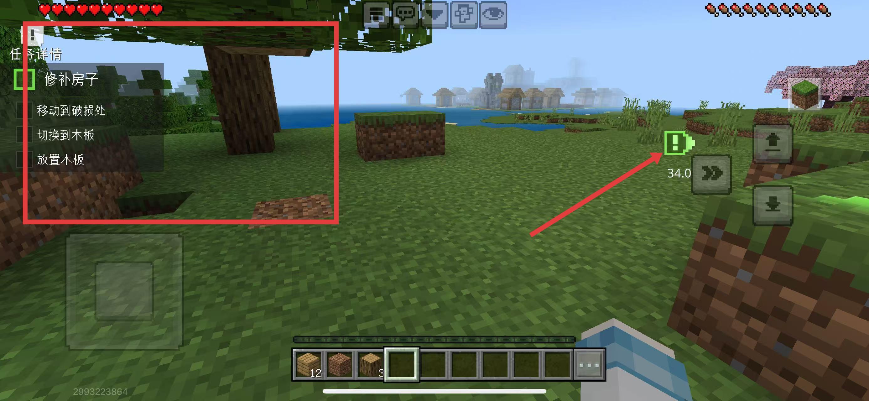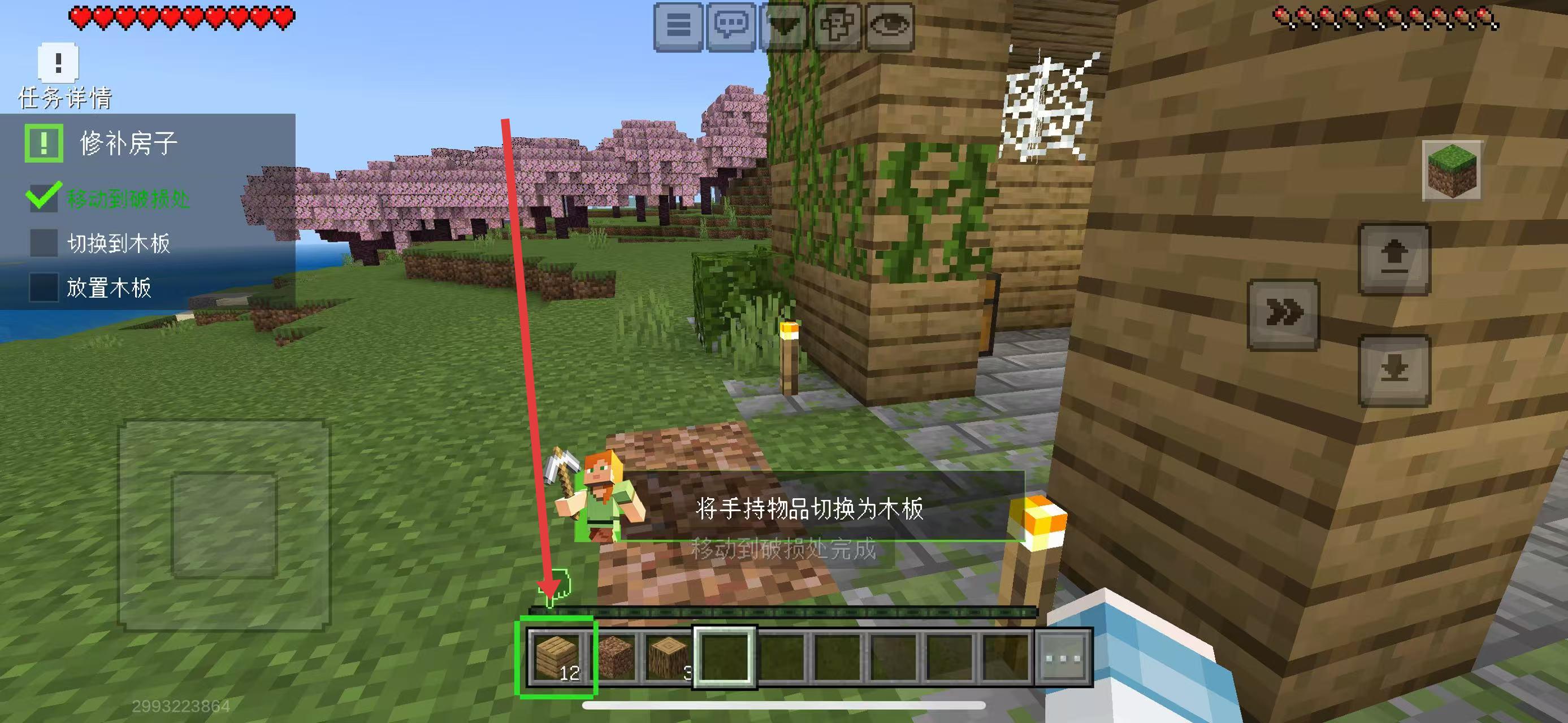 2、到達(dá)破損處后,點(diǎn)擊下方木板圖標(biāo),將手持物品切換為木板,準(zhǔn)備修補(bǔ)。