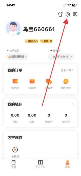 2、在我的頁面中,找到并點(diǎn)擊右上角的設(shè)置圖標(biāo)。