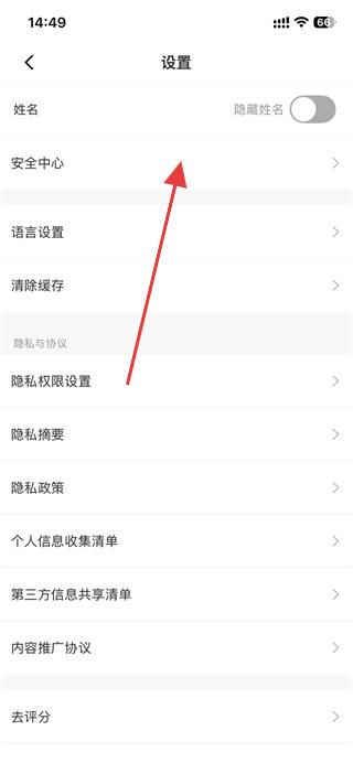 3、進(jìn)入設(shè)置頁面后,找到并點(diǎn)擊上方安全中心選項(xiàng)。