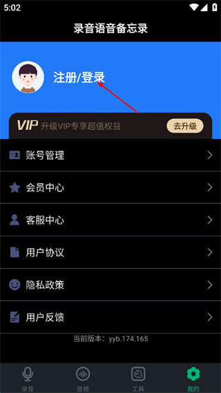 1、打開(kāi)錄音語(yǔ)音備忘錄APP,點(diǎn)擊底部我的選項(xiàng)進(jìn)入個(gè)人頁(yè)面。