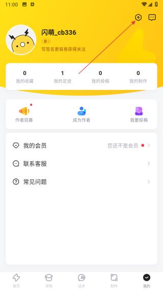 1、打開閃萌表情APP,進入我的頁面,點擊右上角的設置圖標。