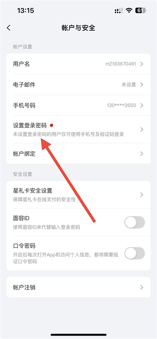 3、在帳戶與安全頁(yè)面,點(diǎn)擊設(shè)置登錄密碼選項(xiàng),觸發(fā)密碼設(shè)置流程,按提示操作。