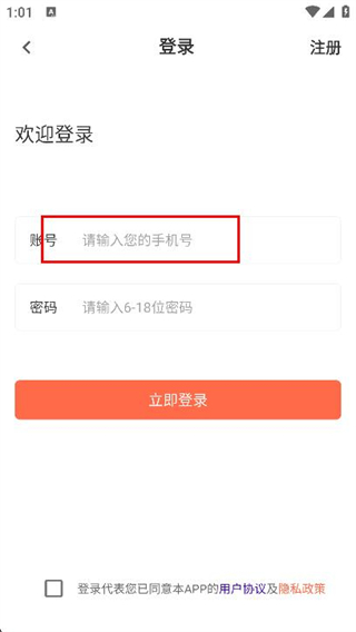 3、進入登錄頁面,輸入需要登錄的手機號。