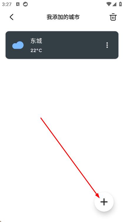 2、進入添加城市頁面,點擊右下角+號圖標。