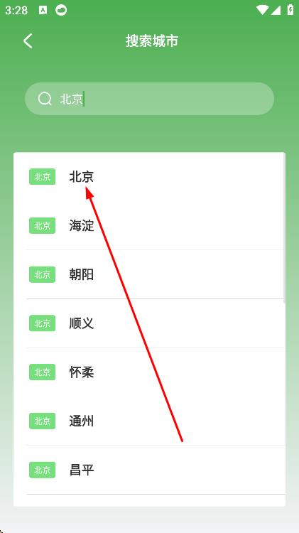 4、在搜索結果中,點擊對應城市選項,完成添加。