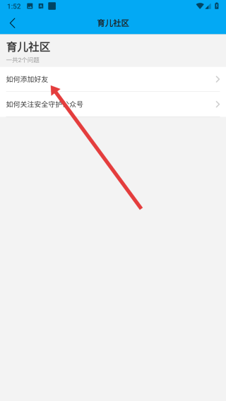 3、在進入到育兒社區(qū)頁面時,可以點擊下方如何添加好友問題,查看解決方法。