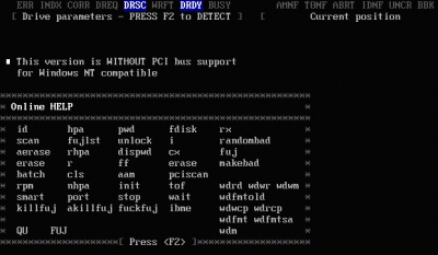 主界面列出了Mhdd的所有命令,下面我們主要講解Mhdd的幾個常用命令:
