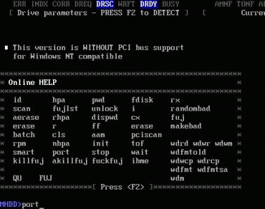 PORT;ID;SCAN; HPA; RHPA; NHPA; PWD ;UNLOCK ;DISPWD ;ERASE ;AERASE ;STOP