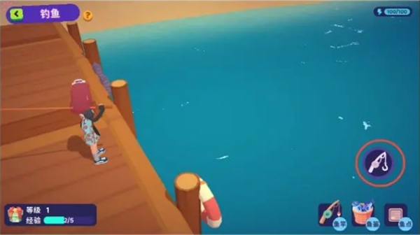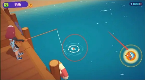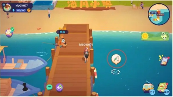 1、先前往地圖上的碼頭魚點,這是開啟釣魚玩法的入口,在此處點擊魚竿氣泡即可進入釣魚界面為釣魚做好準備。