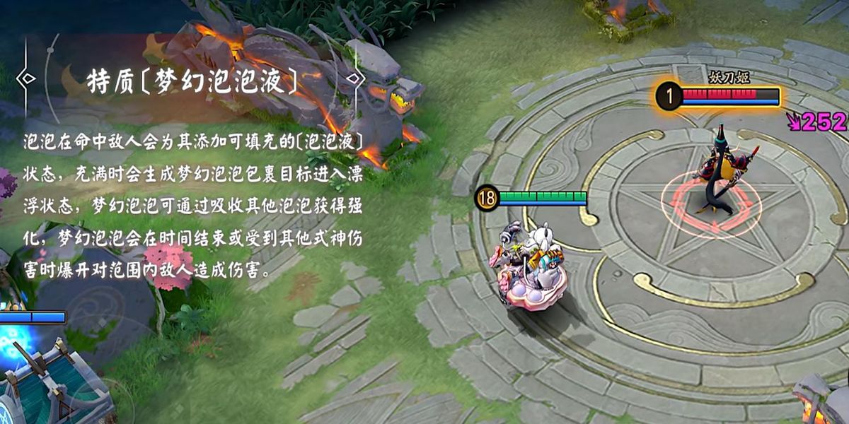 1、特質(zhì)夢(mèng)幻泡泡液,泡泡命中敵人會(huì)添加可填充的泡泡液狀態(tài),充滿時(shí)生成夢(mèng)幻泡泡包裹目標(biāo)進(jìn)入漂浮狀態(tài),夢(mèng)幻泡泡可吸收其他泡泡強(qiáng)化,時(shí)間結(jié)束或受傷害時(shí)爆開(kāi)對(duì)敵人造成傷害。