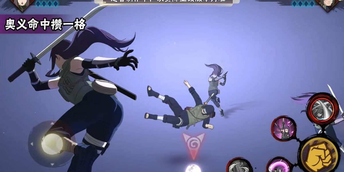 4、奧義大招是原地結(jié)印后向前突刺斬?fù)?,召?個(gè)影分身一同劍舞攻擊,最后揮刀打出終結(jié)一擊,技能多變可通過組合技打出不同效果。